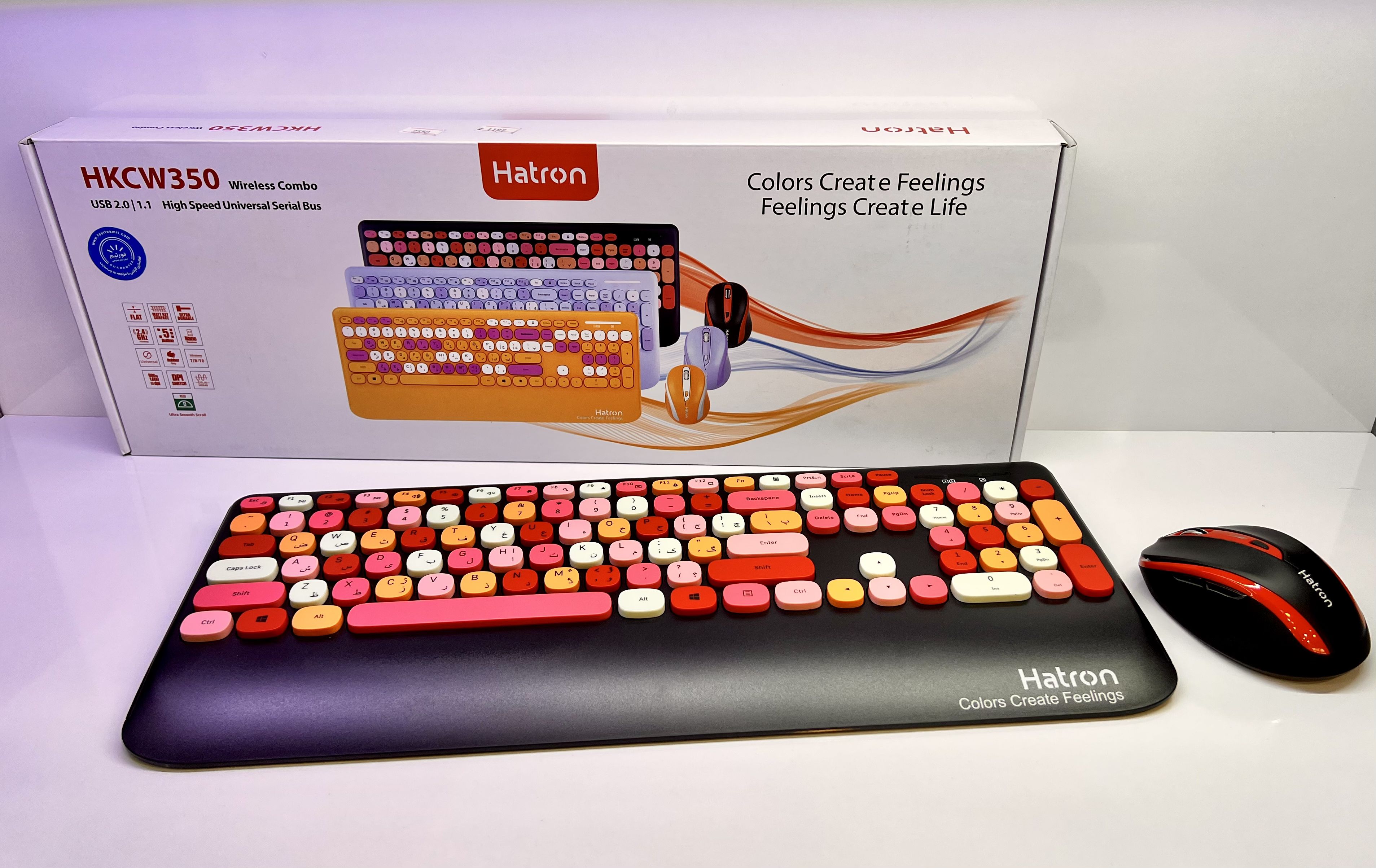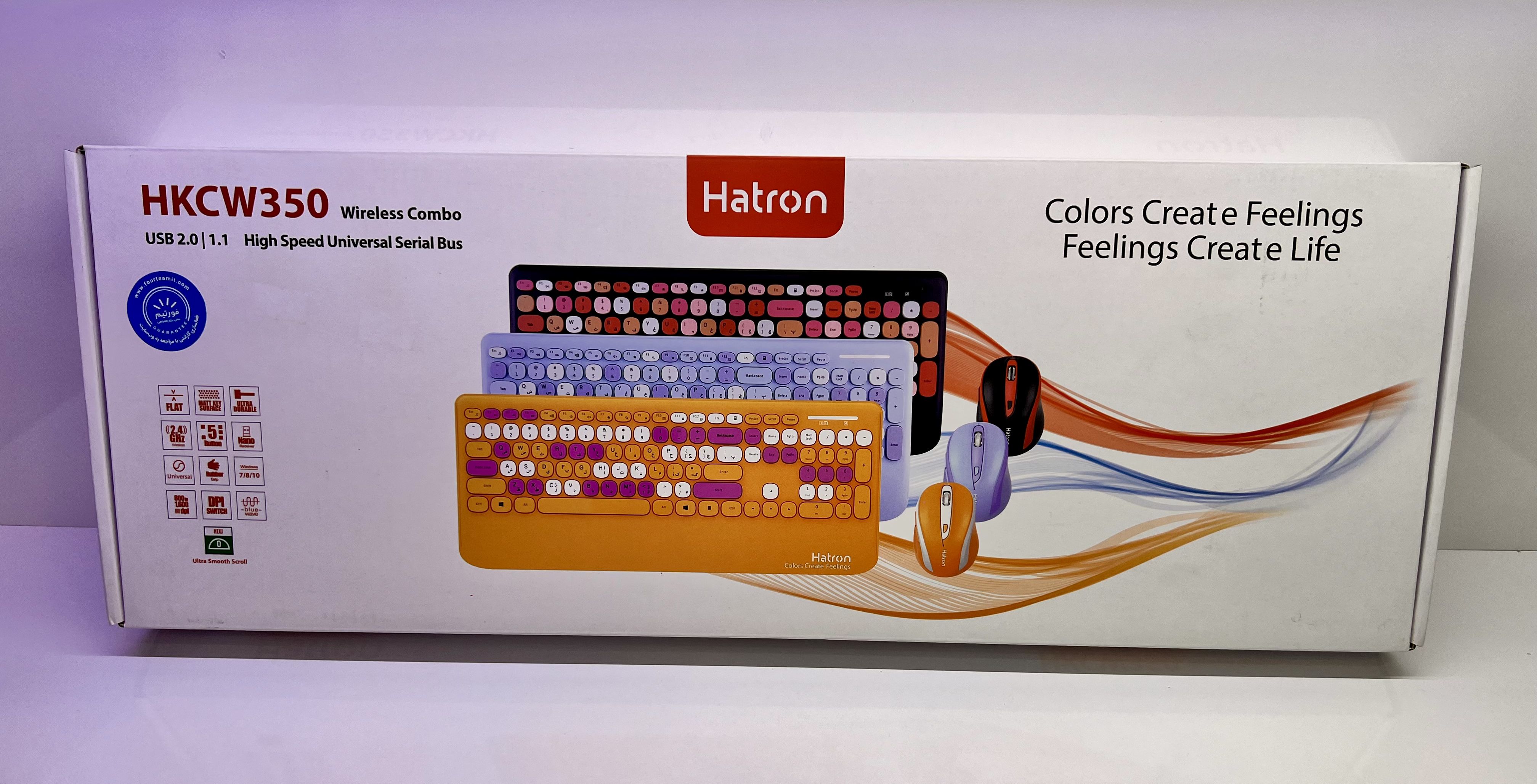 کیبورد و ماوس هترون مدل HKCW350 یک مجموعه بیسیم Full-Size است که برای استفاده اداری و خانگی طراحی شده است. این مجموعه با اتصال ۲.۴ گیگاهرتزی، بردی تا ۱۰ متر را ارائه میدهد و با طراحی کمصدا، تجربهای راحت را برای کاربران فراهم میکند. کیبورد دارای ۱۰۶ کلید شامل ۱۲ کلید میانبر است که به کاربران امکان دسترسی سریع به عملکردهای پرکاربرد مانند ماشینحساب و کنترل رسانهها را میدهد. حروف فارسی حکشده روی کلیدها نیز تایپ فارسی را آسانتر کرده است. این کیبورد از طریق یک دانگل USB به کامپیوتر متصل شده و Plug & Play است، یعنی بدون نیاز به درایور یا تنظیمات خاصی قابلاستفاده خواهد بود. طراحی آن شامل استراحتگاه مچ دست (Wrist Rest) است که از خستگی دست در استفاده طولانیمدت جلوگیری میکند. منبع تغذیه کیبورد، یک باتری نیمقلمی (AAA) است که مصرف بهینهای دارد. ماوس این مجموعه دارای ۶ کلید فیزیکی و حسگر اپتیکال با دقت ۸۰۰ تا ۱۶۰۰ DPI است که عملکردی دقیق و روان را در اختیار کاربران قرار میدهد و مانند کیبورد از طریق دانگل USB متصل شده و انرژی خود را از دو عدد باتری قلمی (AA) تامین میکند. در مجموع، هترون HKCW350 یک انتخاب مقرونبهصرفه، بادوام و مناسب برای استفاده روزمره در منزل و محل کار است.